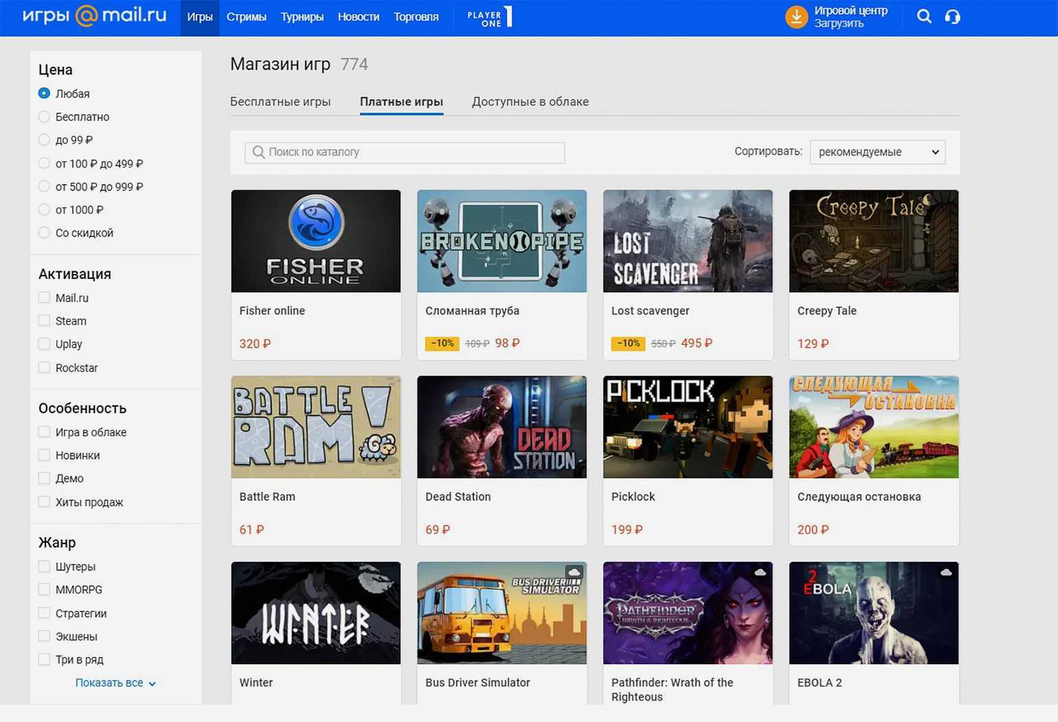 Страница магазина игр на сайте Mail.ru Скриншот: Skillbox Media