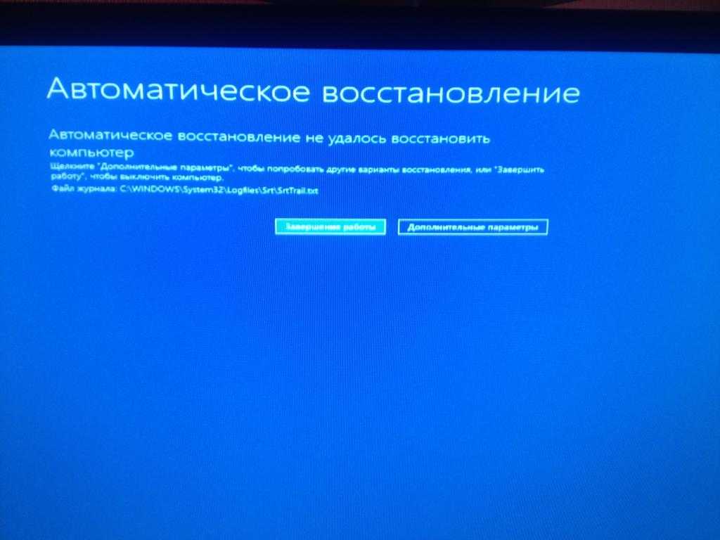 ), а затем выводит голубой экран «Автоматическое восстановление» с текстом .