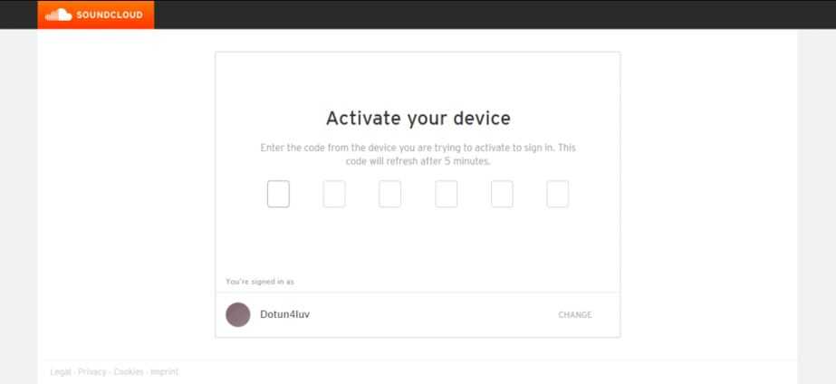 - On this website, type in the Soundcloud.com activation code that you noted down beforehand.