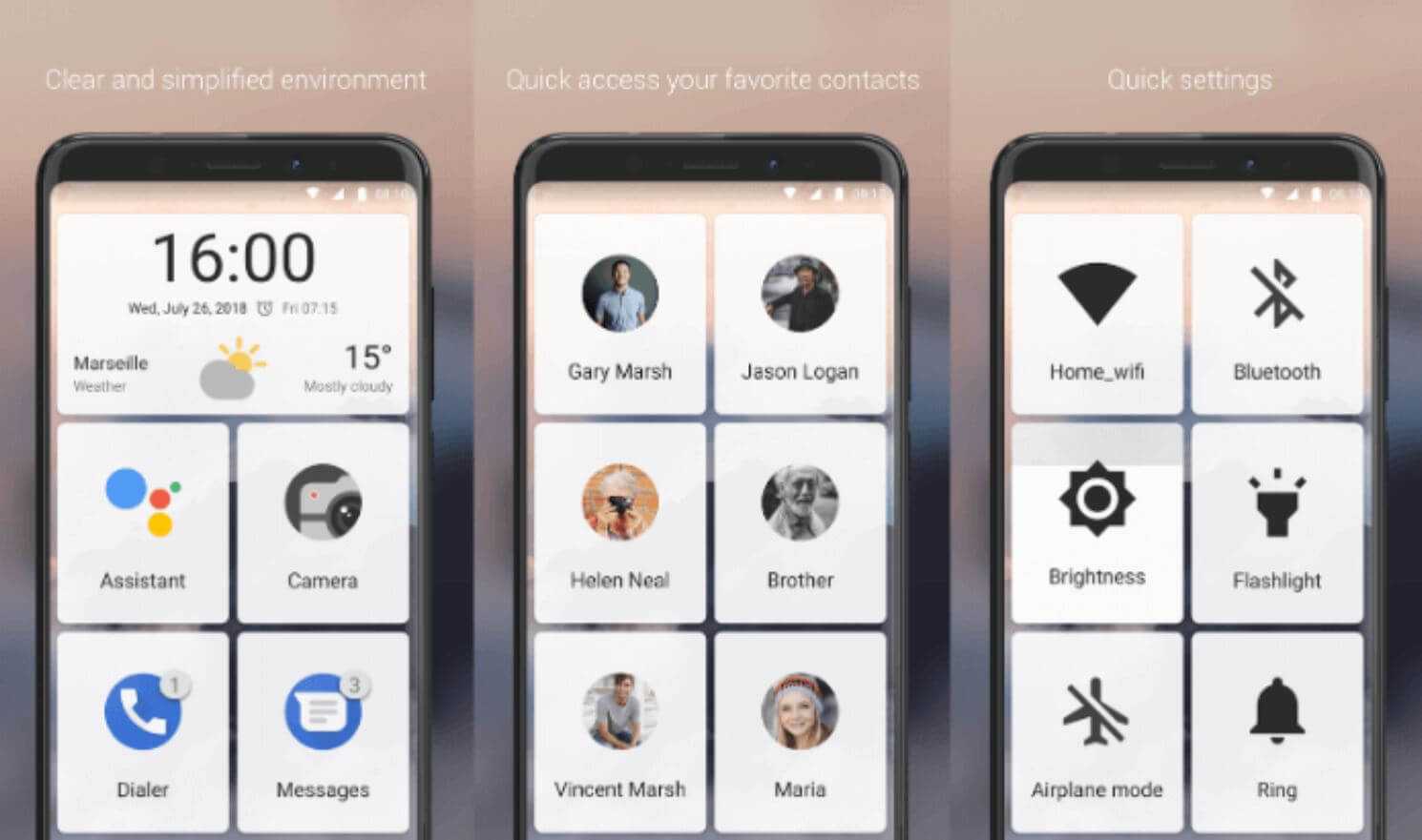 Новый лаунчер хорош для тех, кто предпочитает иметь на своем рабочем столе только самые необходимые значки и не любит «засорять» его большим количеством иконок. Удобные кнопки экстренного вызова с автоматическим набором номеров позволяют быстро набрать нужный номер и предотвратить несчастный случай