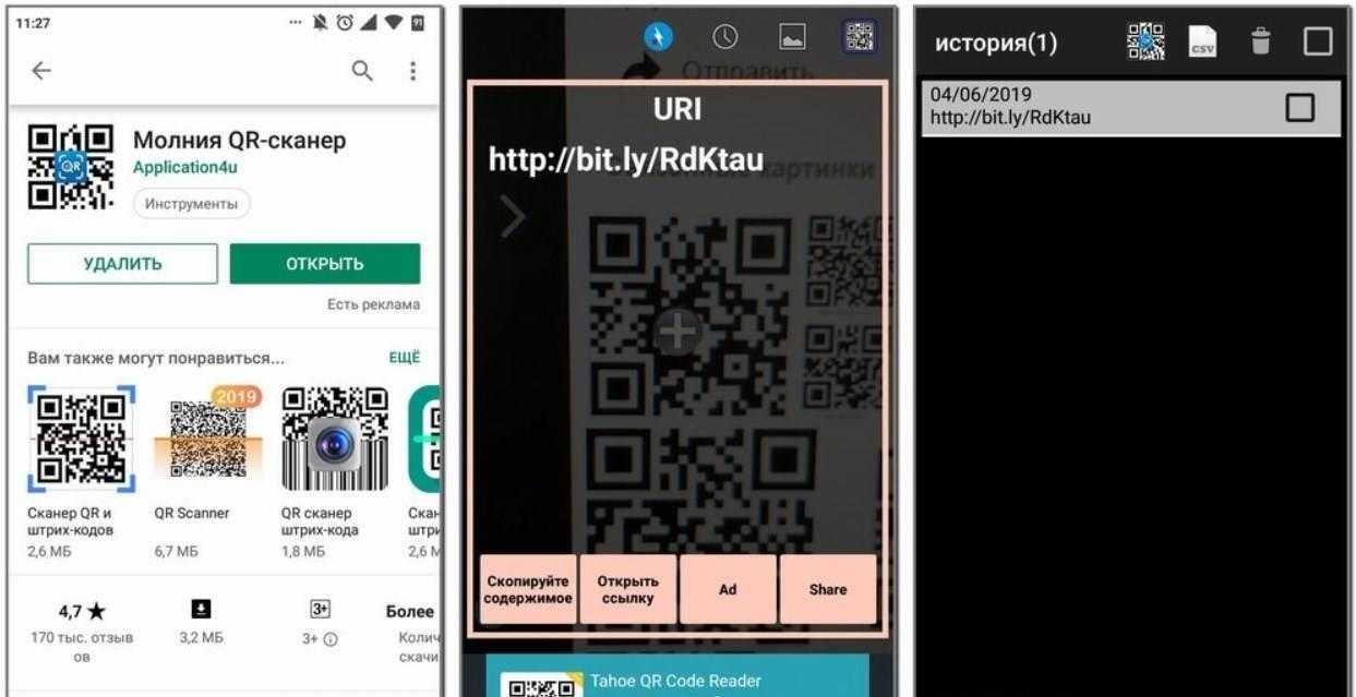 Одной из самых популярных программ для сложных штрих-кодов является продукт «Молния QR». В сети она доступна бесплатно через Play Market (показано более 190000 скачиваний). В данном приложении предварительно рассмотрена функция декодирования данных. Вся история успеха. Если верить потребителям, установка произошла. Во время ожидания данных возникает запрос о действиях в законодательстве. Информацию можно сохранить или сразу удалить.