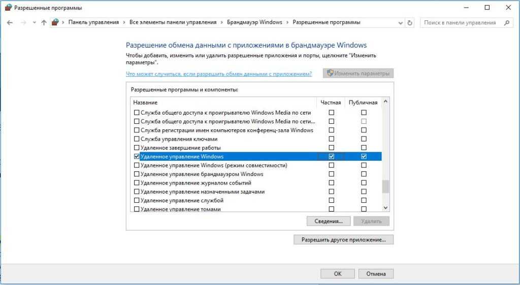 - Если настройка рабочего стола Windows 10 не удалась по причине заблокированного порта, стоит отключить антивирус и проверить настройки брандмауэра. Можем найти нужный пункт через поиск Виндовс. В «Брандмауэр Windows» идём в раздел «Разрешение взаимодействия с приложением…» и устанавливаем выделения напротив «Удалённое управление Windows»;