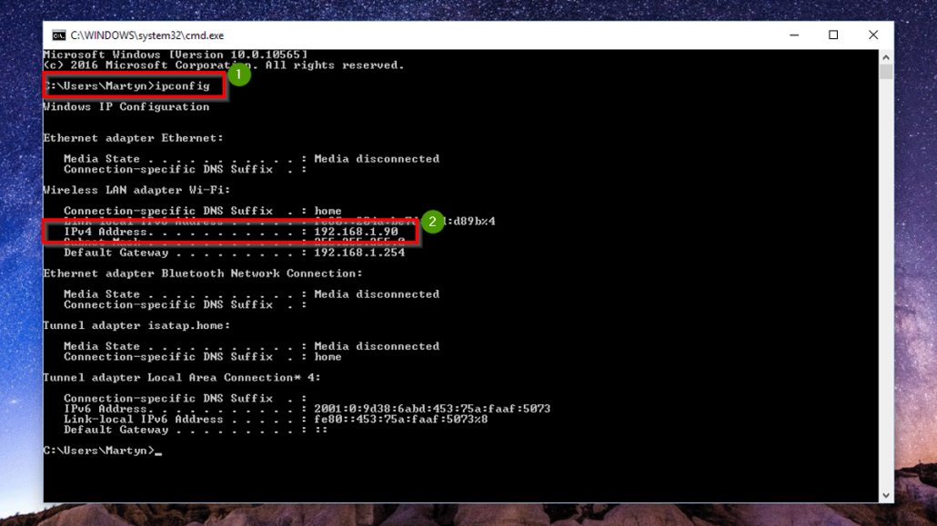 This will give the IP of your remote host PC. Generally the iPv4 address is your IP address.
