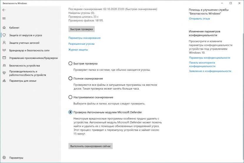Иногда, если вы имеете дело с серьёзным вирусом или другим типом вредоносного ПО, антивирус может не удалить его во время работы Windows 10. В этом случае можно использовать Microsoft Defender для автономного сканирования.