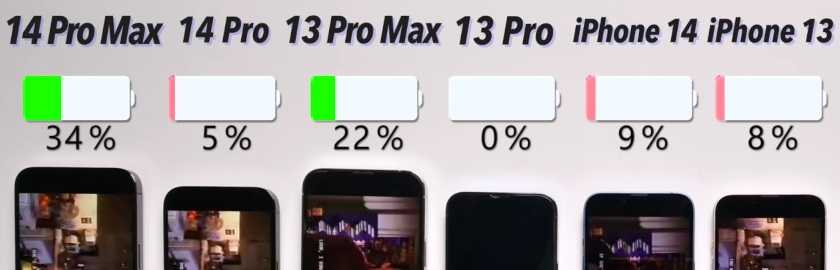 - Когда iPhone 13 Pro Max «разрядился в ноль», у iPhone 14 Pro Max остаётся 8-10% зарядки.