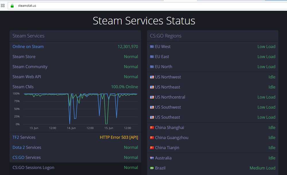 As mentioned earlier, transaction errors may occur if the server isn’t available. You can check out Steam’s official server status page to check out if the server in question is running normally or not.