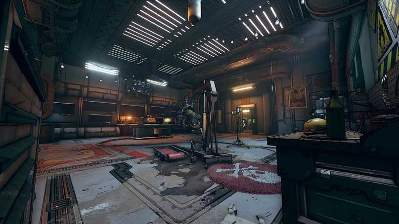 Полюбоваться на потом и кровью собранную добычу можно в кубрике. Здесь же располагается каюта самого искателя Хранилища. В кают-компании можно найти станцию быстрого перемещения, куда вы будете попадать каждый раз при возвращении на борт «Убежища-3», и станцию «Перестройка», с помощью которой можно изменить внешность вашего искателя или перераспределить очки навыков. Здесь же стоит новенький Автомат потерянной добычи, в который попадают ценные вещи, которые вы могли по той или иной причине не заметить в пылу битвы. В общем, вы больше ничего не пропустите и не потеряете.