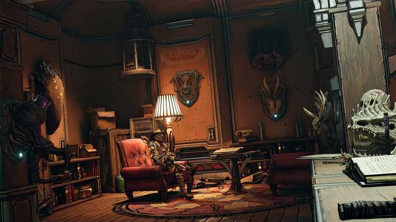 Из вашей комнаты вы получите доступ в собственный банк игрока, где сможете хранить вещи, чтобы освободить место в инвентаре или чтобы передать другому персонажу. Особенно это полезно на случай, если вы нашли мощный модификатор класса, который не подходит для вашего нынешнего героя. Если же у вас есть оружие, которое вам очень нравится, но которое вы не хотите использовать по какой-то причине, вовсе необязательно оставлять его пылиться на полке – можно сделать украшение на стену. Каждый из четырех искателей Хранилища может украсить комнату в собственном стиле: З4ЛП поставит кормушку для питомцев, Амара повесит боксерскую грушу и т.д. Свой уютный уголок можно сделать еще более индивидуальным с помощью украшений, купленный у продавцов или найденных во время путешествий. Очень удобно, что в кубрике расположено четыре каюты – для каждого игрока в совместном режиме, – так что вы сможете даже заглянуть в гости в берлоги товарищей.