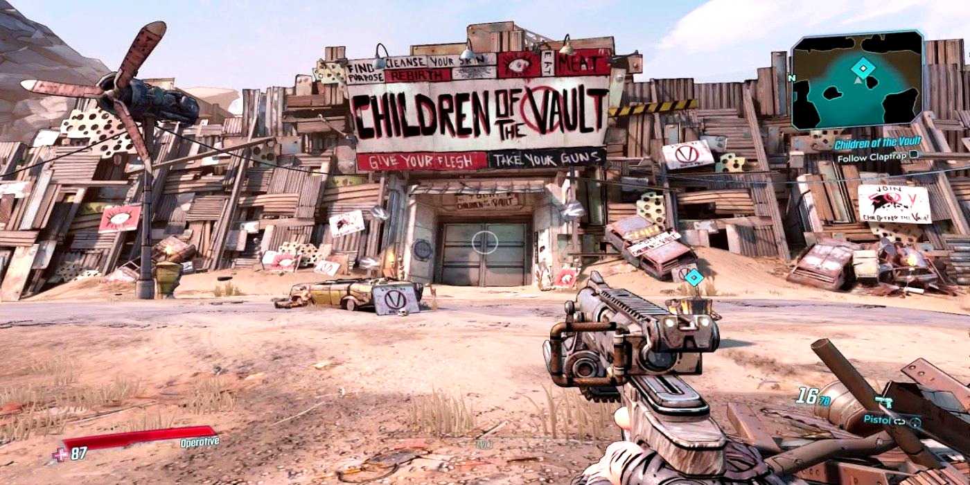 Рядом с магазином Маркуса расположен стрелковый полигон. Здесь можно сыграть в мини-игру и поразить выстрелами ряд мишеней за определенное время. Уверенные в себе стрелки могут попытать силы в нормальном режиме и режиме достижений. А можно просто пострелять от души, чтобы понять, на что способна новая пушка. Поблизости находится еще и золотой сундук – вместилище шикарных сокровищ, которые всегда соответствуют уровню вашего искателя. Открыть золотой сундук можно только золотыми ключами, которые щедро раскиданы по интернету. Стоит поискать в местах, посвященных Borderlands.