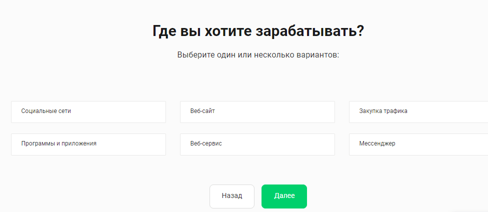 В следующем окне нужно выбрать способ продвижения, с помощью которого вы будете зарабатывать на партнерской программе admitad.