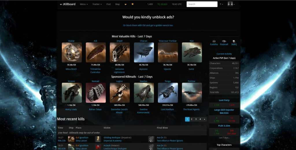 Без преуменьшения zkillboard или «борда», как её называют игроки является наиболее посещаемым сайтом. На данном ресурсе отображаются все уничтоженные корабли игроков. Если вы когда то теряли свой корабль от рук другого игрока — будьте уверены, что вы найдете свой слив на данном ресурсе.