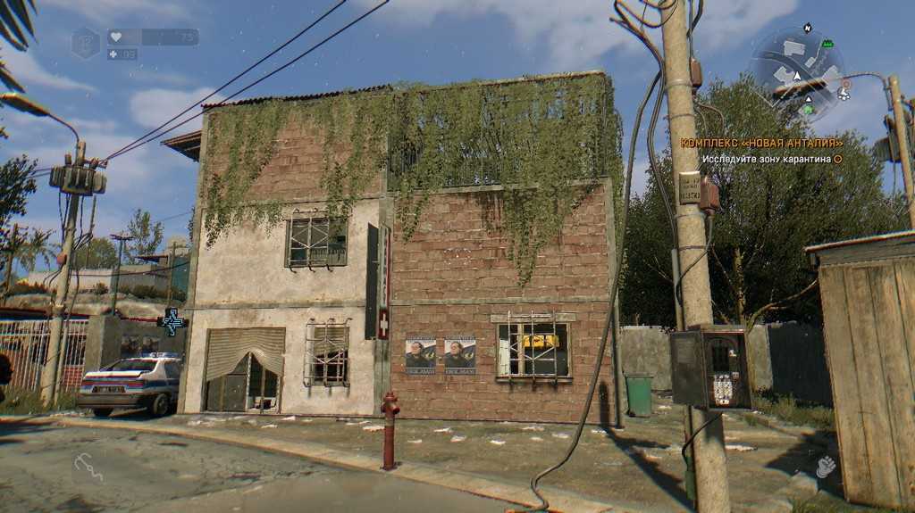 Первое место находится трущобах, не подалёку от башни. Идём прямо по дороге пока не увидим трехэтажный дом справа от нас. Этот дом и является лутным местом, всё там: гвозди, кабели, электроника, еда, мет. детали, марля и пара (взломанных) ящиков. Зайти в дом можно только с крыши через задний двор. Залезаем на контейнер с мусором забираемся на ставню окна, дальше прыгаем на неё и стоим ну и забираемся на кондиционер и на крышу. Вход на решётке слева.Кусак там нет, даже прыгуны и ночные охотники не смогут войти туда, а это может помочь скрыться от неприятеля. Лутаем и выходим через дверь на первом этаже.