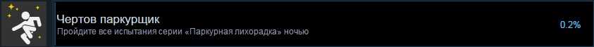Необходимо пройти новые испытания паркура, на карте выглядит как «Бегущий человек»/»Ботинок». Всего 10 штук, 5 в трущобах, 5 в старом городе. Советую сразу начинать выполнять их ночью, так как при выполнении их в ночное время вы также получите достижение Чертов паркурщик.