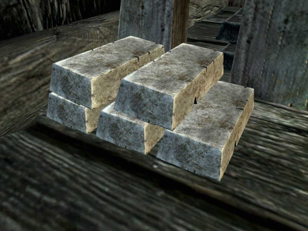 Больше никаких слитков в «Скайриме» нет. Некоторые разновидности ресурсов добыть проблематично. Например, эбонитовые слитки. Они нужны для создания и улучшения аммуниции высокого уровня.