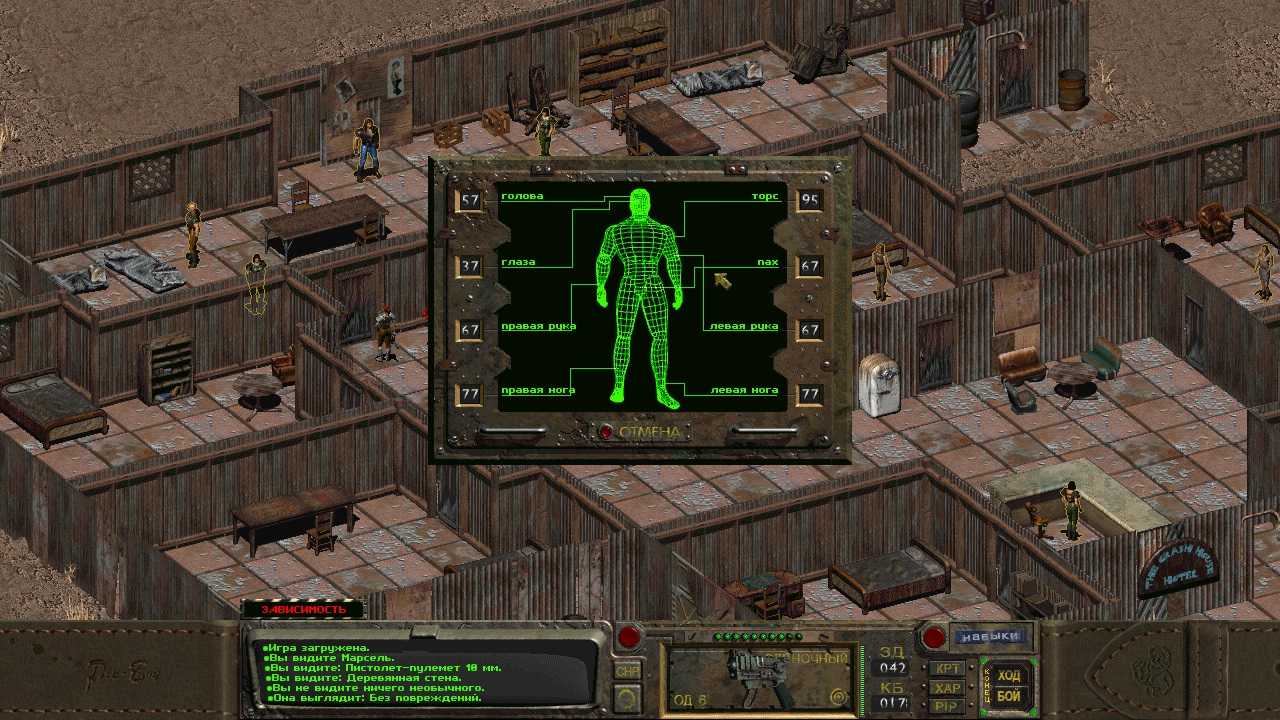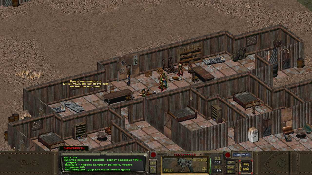 В отличие от многих других игр схожего класса, в Fallout 1 довольно забавно реализована боевка. Если в обычном «не боевом» режиме игра течет в реальном времени, то вот с переключением на бой включается пошаговый режим.