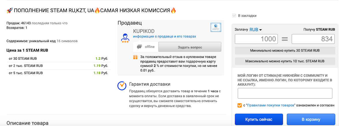 После оплаты продавец должен зайти в ваш аккаунт и совершить покупку с карты зарубежного банка. Все это занимает не более 5-10 минут.
