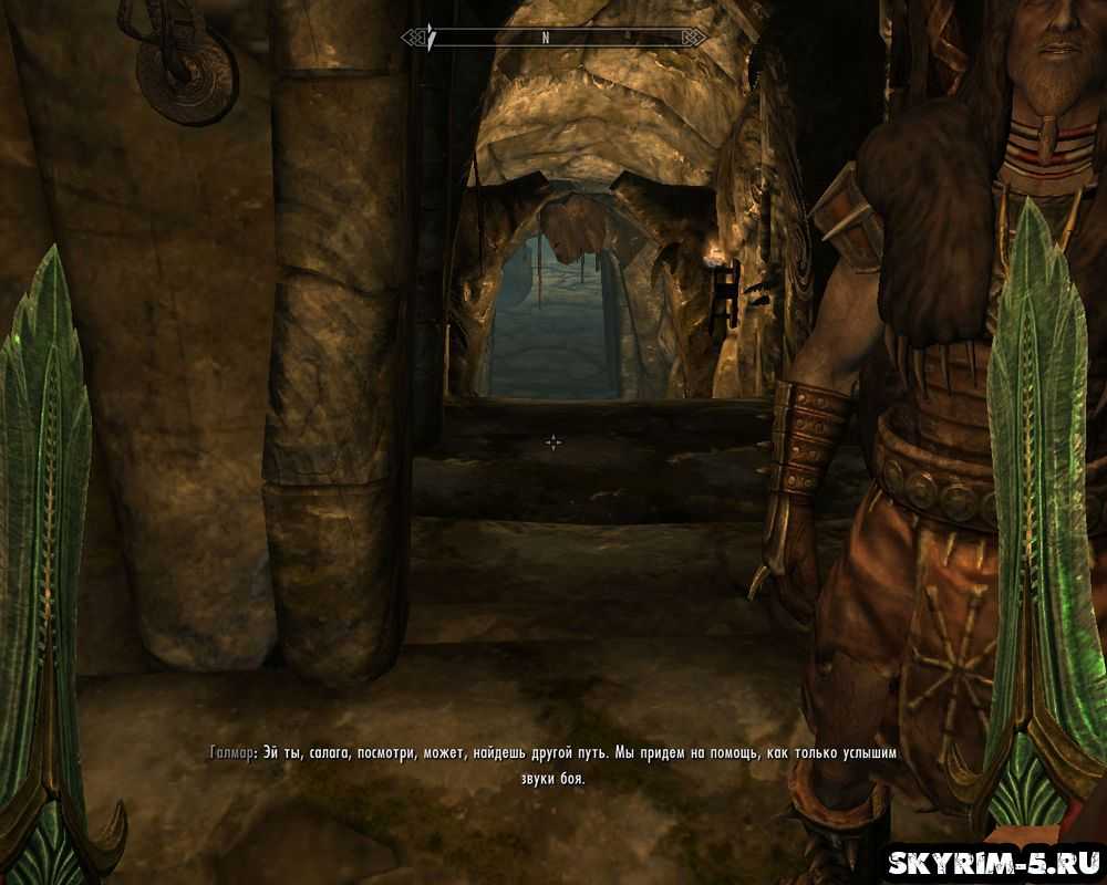 Но добром нам естественно её никто не отдаст (кто бы сомневался). Придется доказать драуграм, что они не правы, и корона нужна нам. Как только последний драугр падает от вашей (а может и не вашей) руки, забираем с военоначальника корону. За троном, кстати, есть стена с очередным словом силы. Всё, мавр сделал свое дело, мавр может уходить. Всмысле пора отнести корону Ульфрику. Но не спешите бежать обратно по коридорам. Возле стены со словом силы есть небольшая деревянная лесенка, поднявшись по которой мы обнаружим коридор, что выведет нас в храм — первую часть захоронений. Возвращаемся к Ульфрику и отдаем ему корону. Тот просит нас передать ярлу Вайтрана Балгруфу… топор. Ну… Топор так топор.
