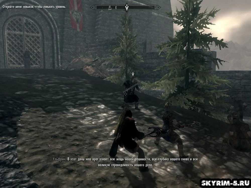 Идём к нему и устраиваем Имперцам глобальный геноцид. После чего возвращаемся обратно к Галмару, в Хаафингард. Там (возможно немного побегав рядом и помучавшись) мы получаем распоряжение помочь в нападении на Солитьюд. Идём к нему, возле ворот встречаем десяток солдат, во главе с Ульфриком, произносящим пафосную речь.