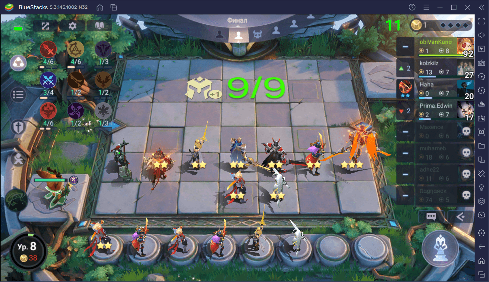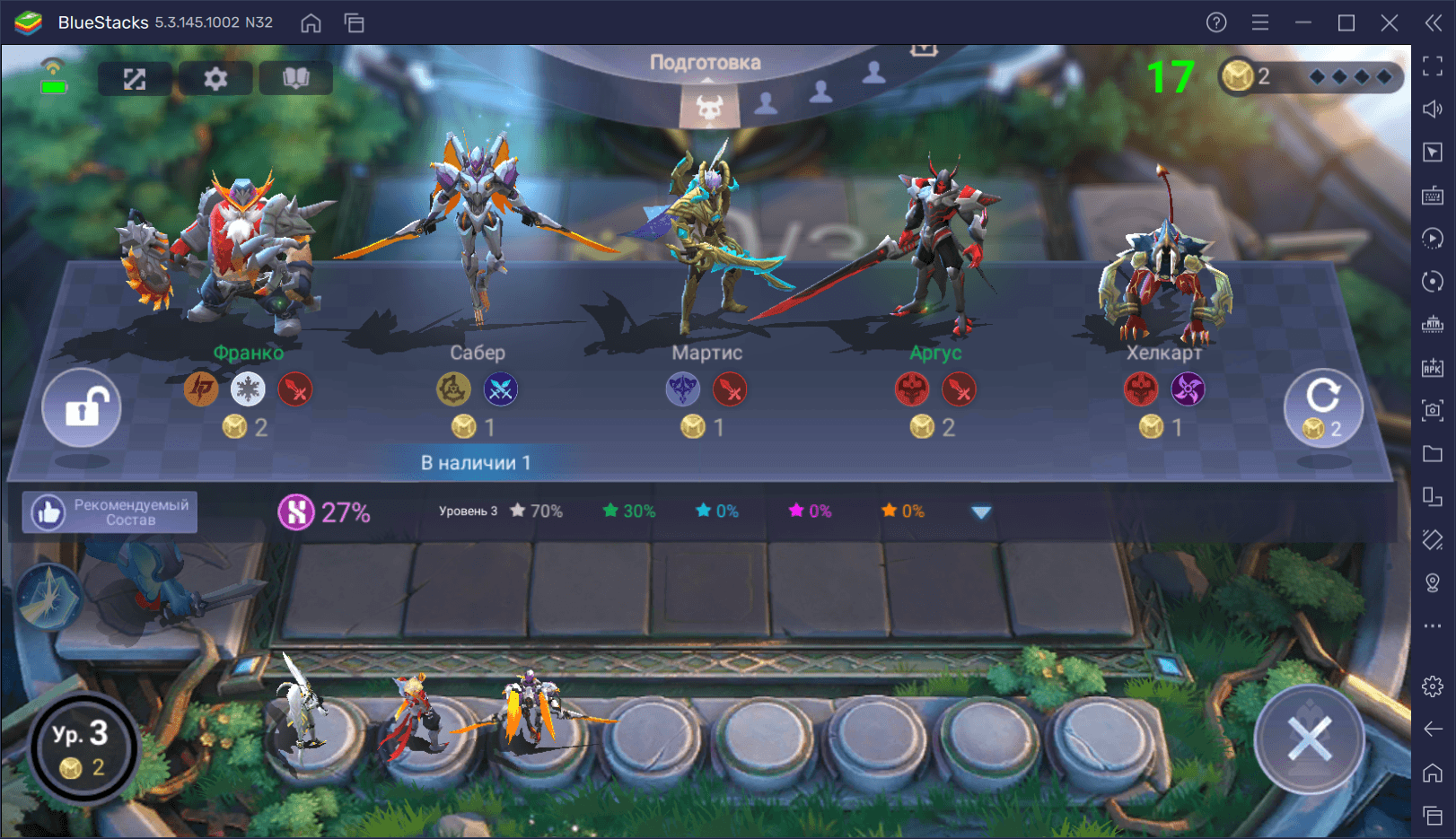 По этому, советую не тратиться на дорогих персонажей в начале игры, а накопить 20 золота и оставлять не ниже 20. Не стоит торопиться и обновлять сетку героев.