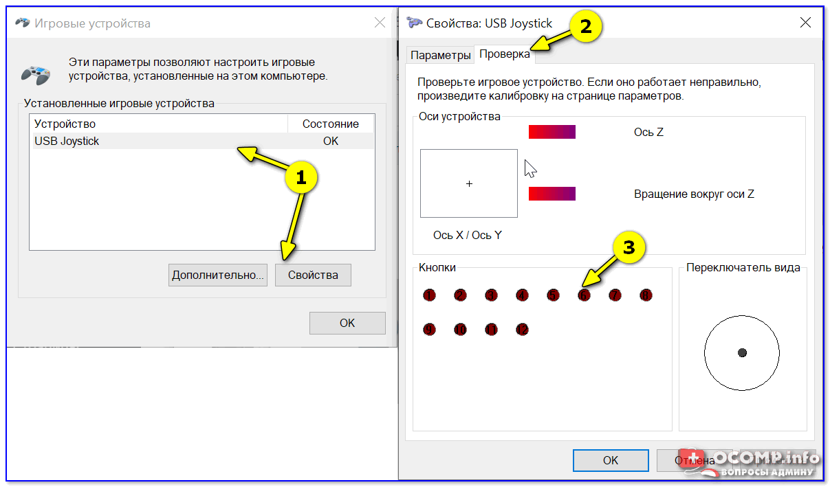 Если джойстик исправен и драйвер на него корректно установлен — вы должны увидеть, как на экране проверки начнут мигать кнопки (см. скрин ниже ?). В идеале, при нажатии на любую из кнопок — вы должны видеть реакцию…