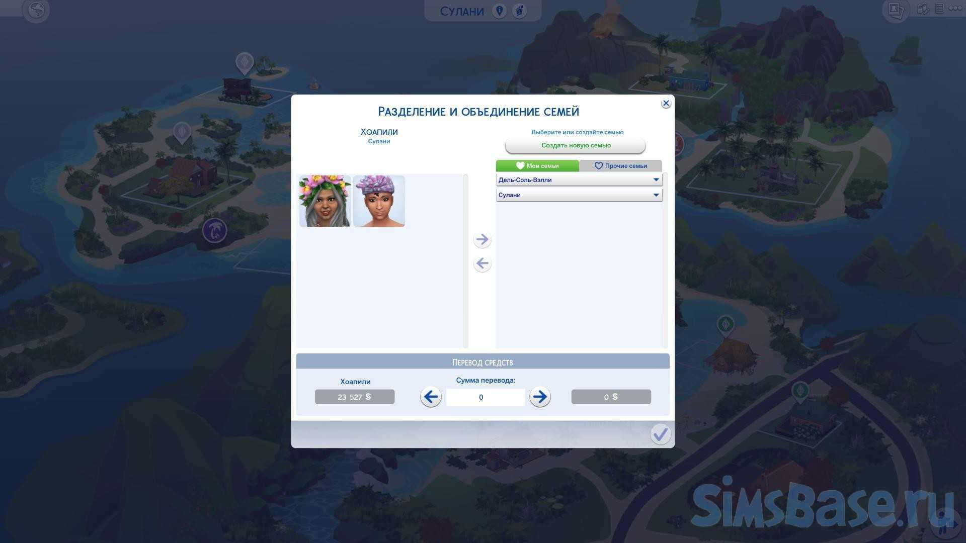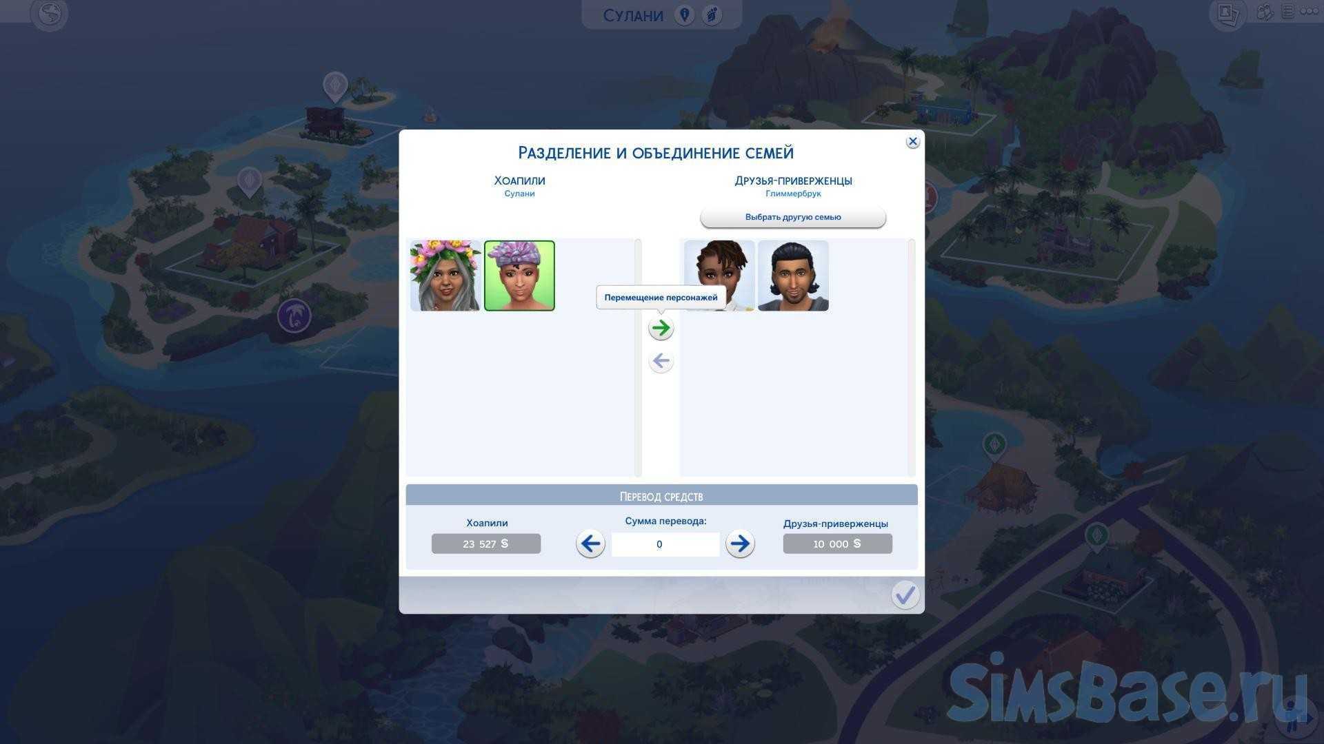 Если вы хотите переместить своего сима в дом другой семьи, просто выберите эту семью в меню «Разделение и объединение семей». Это семейство будет отображаться в поле в правой части окна. Затем выберите сима, которого хотите переместить, и используйте стрелку в центре двух полей, чтобы переместить этого сима в другую семью.