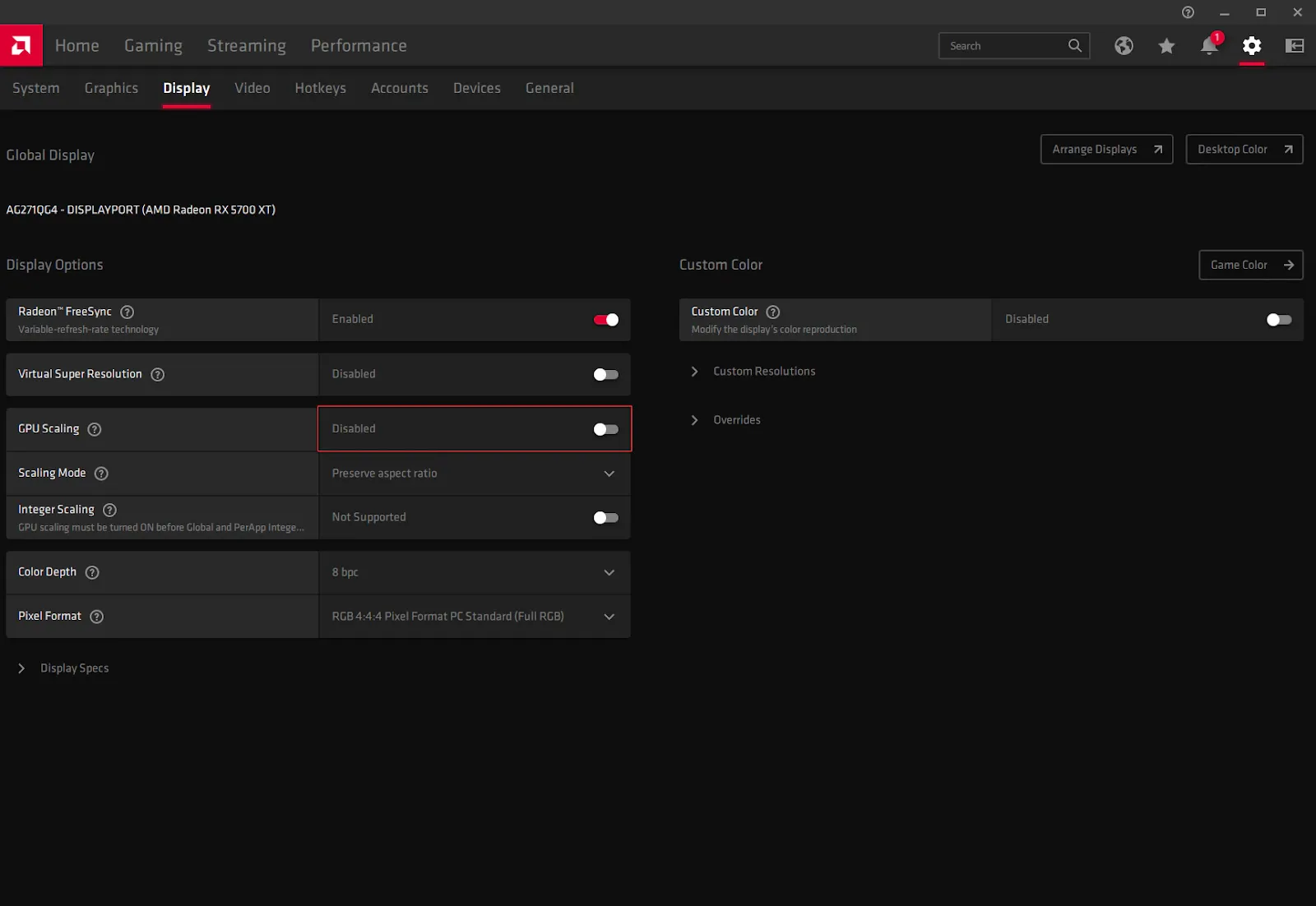 Как и в предыдущем решении, отключение масштабирования графического процессора устраняет влияние драйверов AMD или Nvidia на настройки полноэкранного режима.
