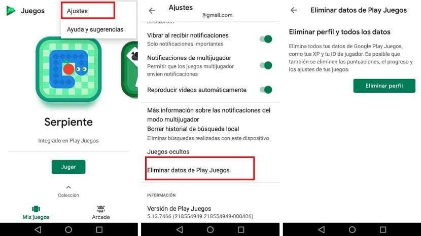 Мы можем повторить процесс со всеми играми, которые нам нужны, в этих настройках. Хотя, если вы хотите удалить их все, вы можете использовать опцию удаления профиля, что приводит к одновременному удалению всех игровых данных. Но при этом предполагается, что профиль также будет удален, но выбор каждого пользователя остается за каждым пользователем.