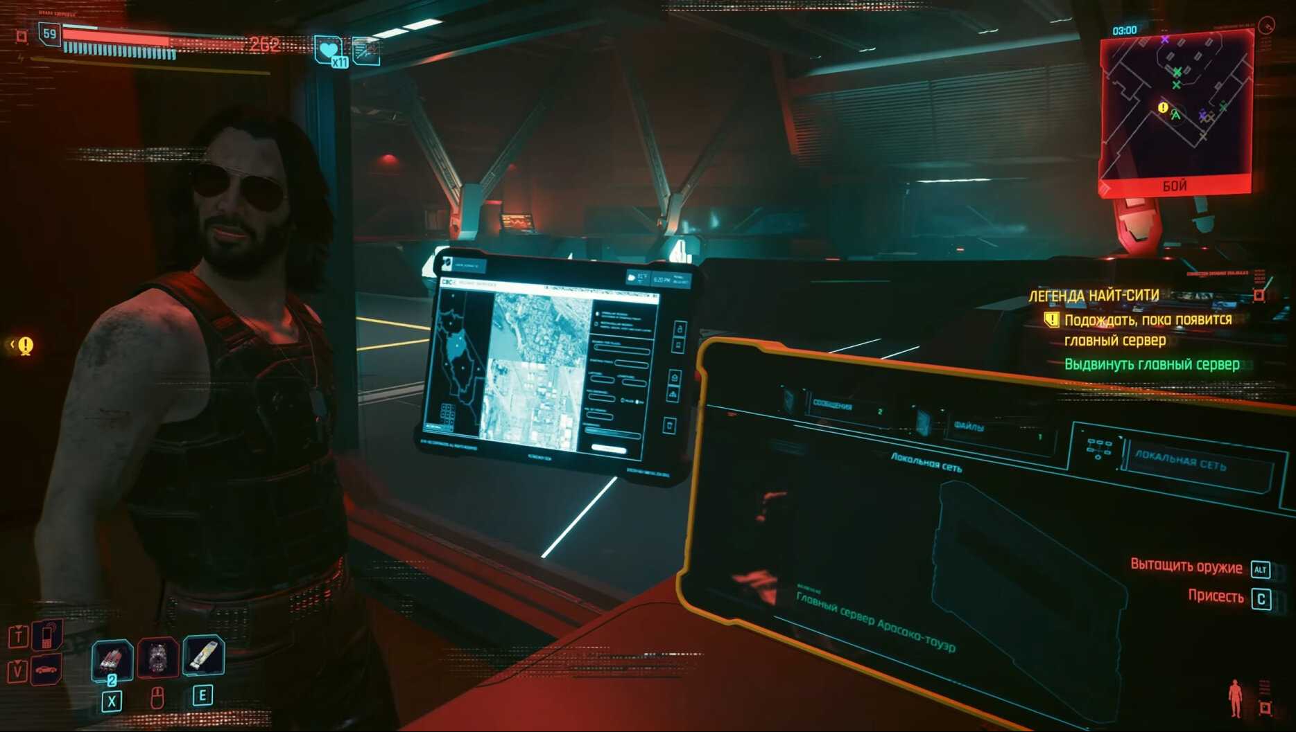 После победы над Роуз отправляемся в центральный зал. Там можно взломать терминал и использовать турели для борьбы с бандитами. В стоящем фургоне можно получить информацию о нетраннере.