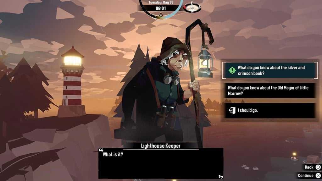 Он расскажет о книге, которую держит Коллекционер, но не пойдет с вами. Затем вам нужно вернуться в Greater Marrow и поговорить со смотрителем маяка. Спросите ее, что она знает о малиновой и серебряной книге, и она расскажет вам тревожную историю. Понятно, что вам нужно пойти и получить его от Коллекционера.