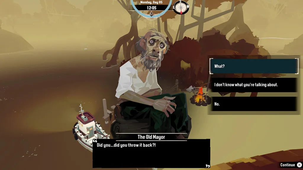 Хорошую концовку в Dredge получить гораздо сложнее. Соберите все реликвии, как в плохой концовке, но не выходите с Коллекционером. Вместо этого вернитесь в Twisted Strand и поищите костер где-нибудь в мангровых зарослях. Вам понадобится несколько упакованных взрывчатых веществ, чтобы добраться до него. Когда вы подойдете к костру, вы встретите Старого мэра, персонажа, на которого намекают в Greater Marrow.