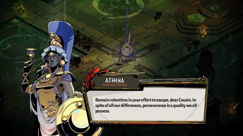 Receive a compliment from Athena at least 3 times to complete her favor. You will receive a compliment from her simply by successfully escaping the Underworld in your previous run.