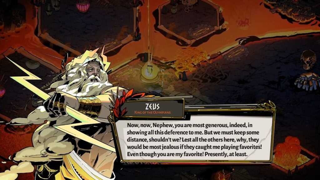 To complete Zeus’ favor, you will need to hear 5 other gods speak about him. You can do this by getting a boon from Zeus early in the run and coming across another god later.
