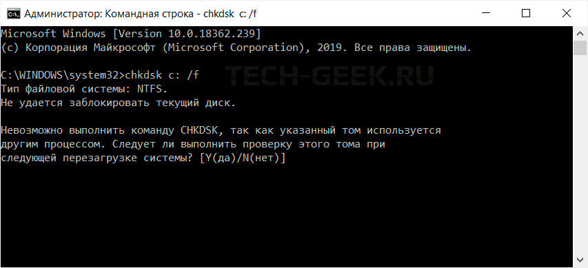 <strong>chkdskc/f</strong> и нажмите Enter. - Введите «Y» и нажмите «Enter»