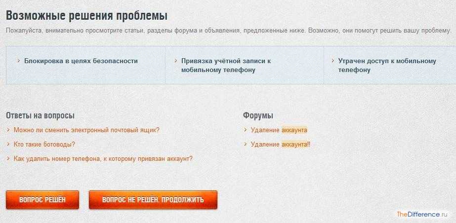 Система предложит вам готовые ответы для решения вопроса удаления аккаунта. Нажмите кнопку «Вопрос не решен, продолжить», чтобы обратиться в техническую поддержку.