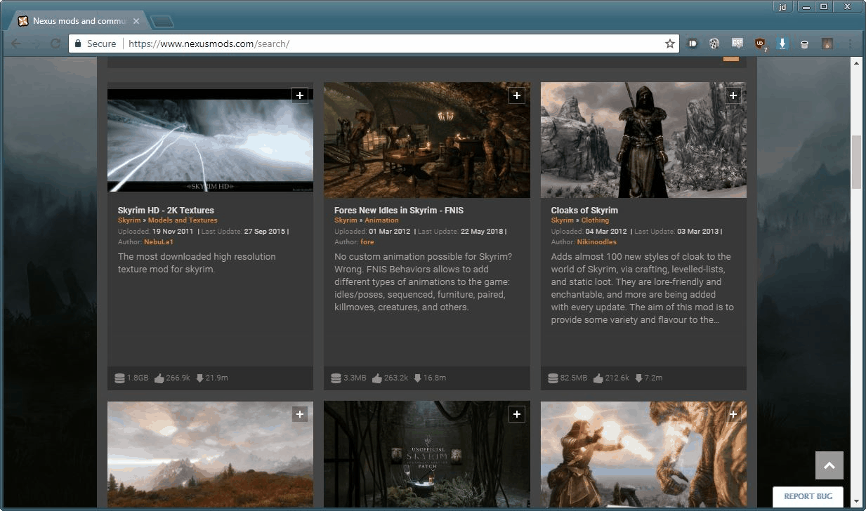 Самый простой способ найти и установить моды для исходной версии Skyrim на ПК — это программа Nexus Mod Manager, с которой связан веб-сайт. Эта программа также совместима с Skyrim: Special Edition и многими другими играми. Моддеры загружают свои работы на веб-сайт, где пользователи могут искать интересные моды, загружать их, а затем устанавливать с помощью программы Nexus Mod Manager.