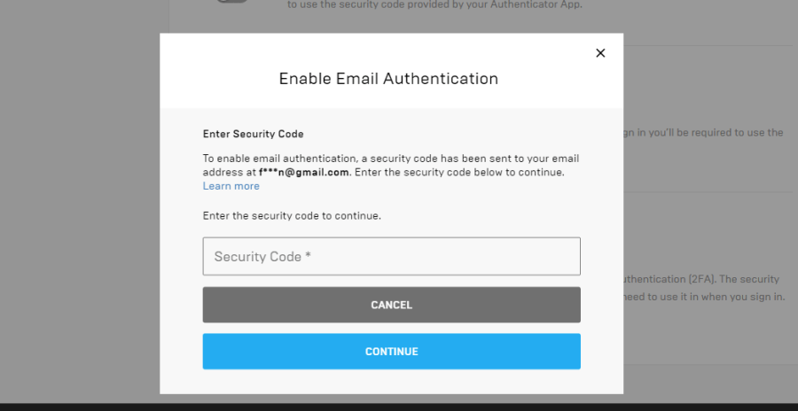 - If you select to enable “Fortnite 2FA Email Authentication, click on” Email Authentication.
