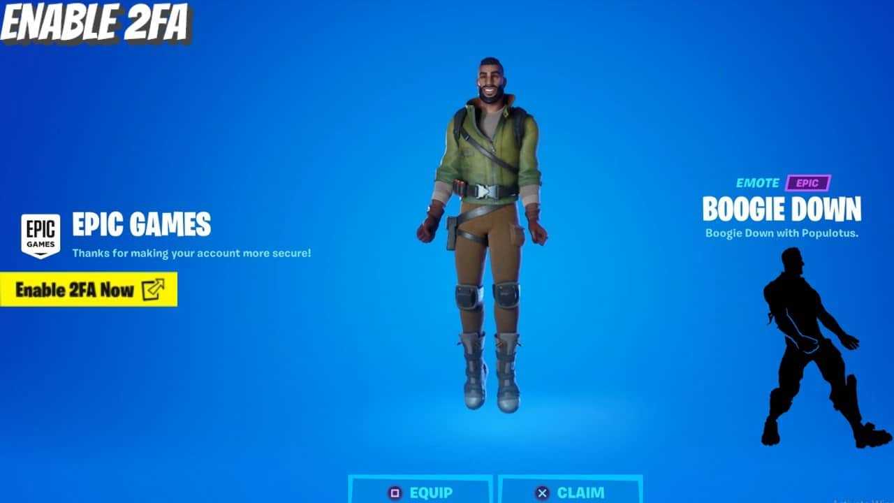 Если вы включите двухфакторную аутентификацию для своей учетной записи Epic Games, вы разблокируете скин Boogie Down! Fortnite pic.twitter.com/BES6Mf23MX