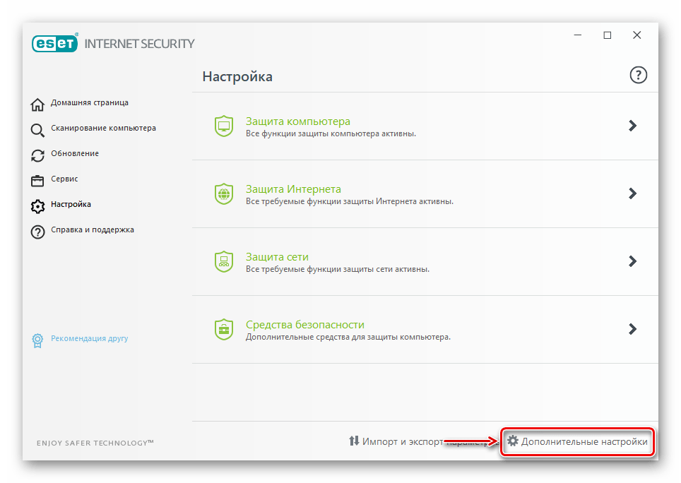 Открываем настройки ЭСЕТ Интернет Секьюрити.