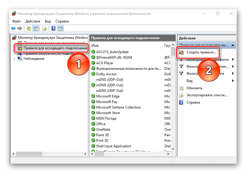 Создать правило можно напрямую в брандмауэре Windows Defender, но на это потребуется чуть больше времени, так как настраивать все придется вручную.