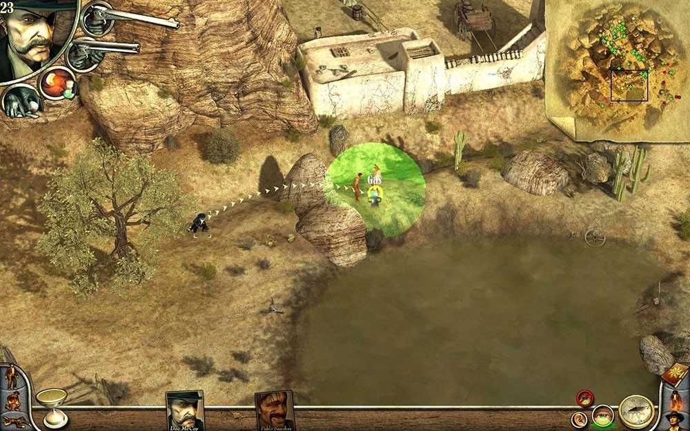 Данная игра про Дикий Запад имеет несколько уровней, различающихся по сложности. На любого из героев тут предусмотрено по шесть персональных действий, а в целом в игре 20 новейших умений: персонаж сможет плавать, делать успокоительные уколы и прочее.