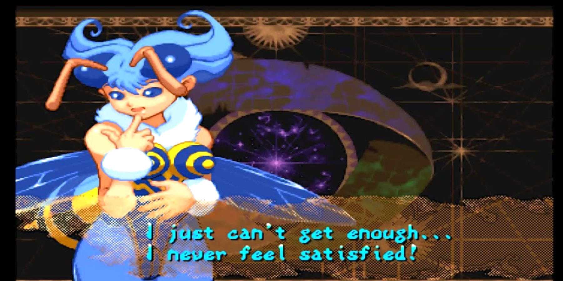 Можно представить себе существо из расы демонов-насекомых гротескным и чуждым по внешнему виду, но Кью-Би из Darkstalkers всегда выглядел более человечным по сравнению с другими насекомыми из видеоигр. На самом деле, большинство ее вариантов в серии видеоигр больше похожи на пчелиных косплееров, чем на то, как должен выглядеть пчелиный демон. Но, несмотря на принадлежность к расе монстров, которые поглощают души, чтобы жить, рост Кью-Би составляет всего четыре фута; с таким ростом трудно быть грозным. А с таким лицом, как у нее, ее жертвы, вероятно, выстраиваются в очередь, чтобы предложить свои души на съедение. У нее также есть привычка преследовать людей, чтобы узнать о них информацию, и время от времени она предлагает людям вступить на ее сторону, как какой-то злой мормон.