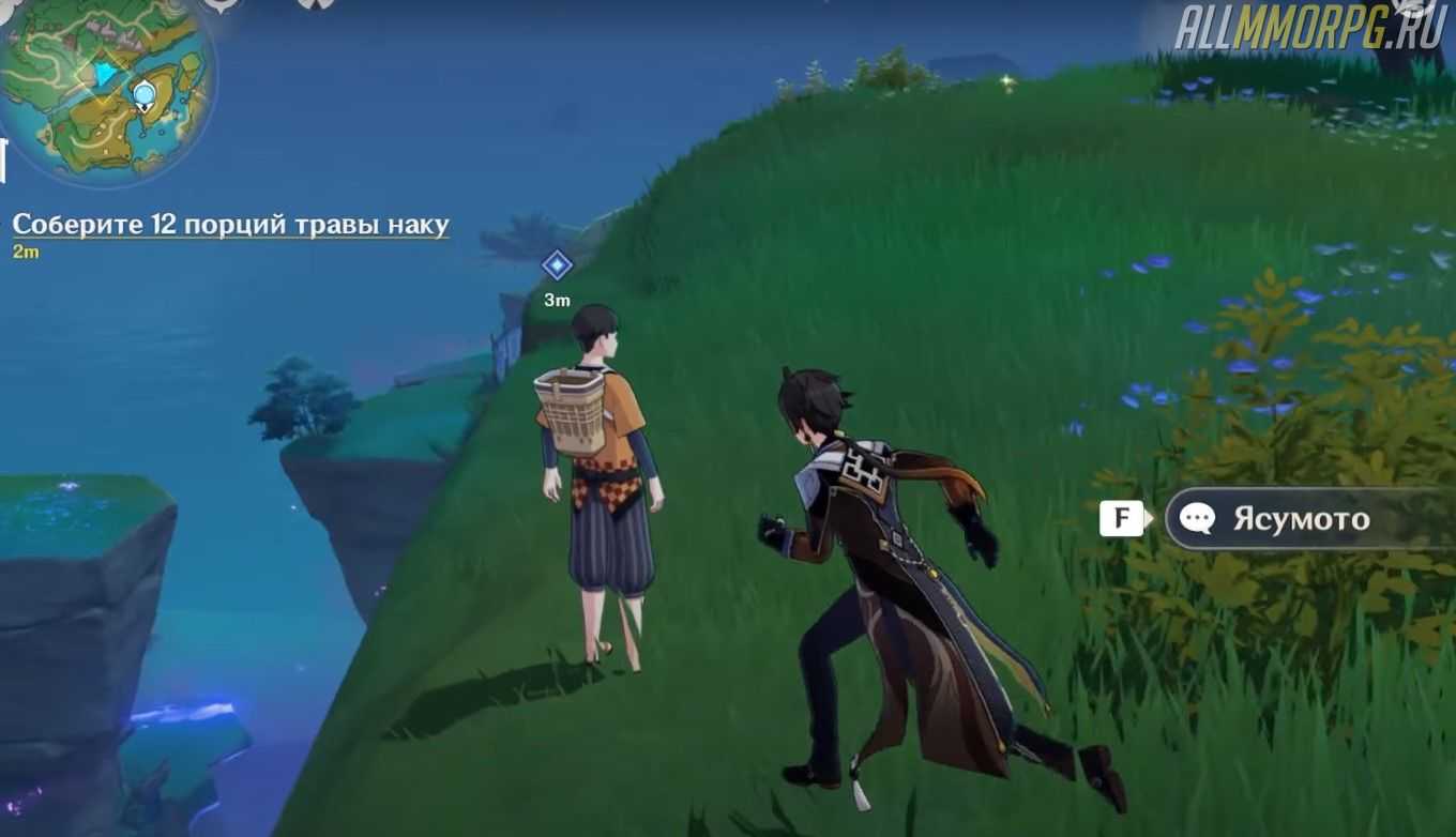 Если вы уже осмотрели локации Инадзумы, то, скорее всего, в вашем инвентаре накопилось достаточно травы наку, которая является диковиной региона. Чтобы сделать квест «Лечение на острове», вам необходимо насобирать 12 штук этого растения. После отправляйтесь к статуе Семи Архонтов возле деревни Хиги и найдите аптекаря по имени Ясумото. Он выдаст вам поручение, цель которого – убить несколько групп самураев и бандитов.