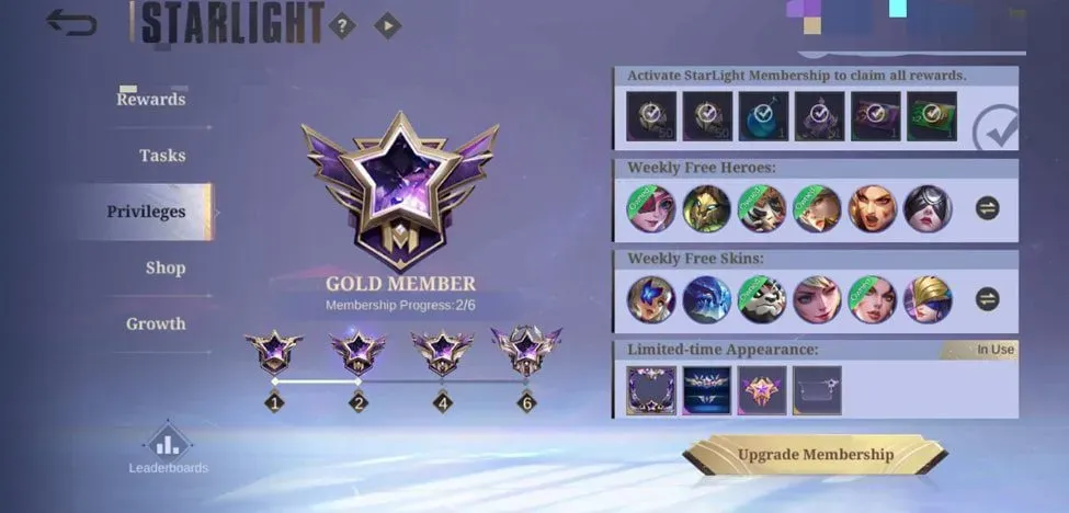 Игроки могут проверить преимущества участника Starlight в игре, щелкнув Starlight Pass, а затем выбрав вкладку привилегий.