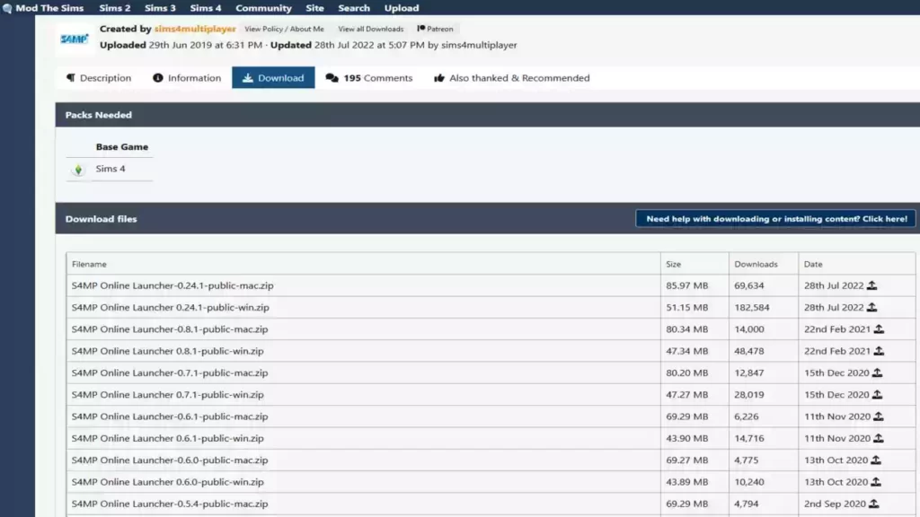 Скачайте файл с модификацией S4MP на компьютер каждого участника игры. Сделать это можно бесплатно на странице мода на популярном портале ModTheSims, перейдя по этой ссылке.