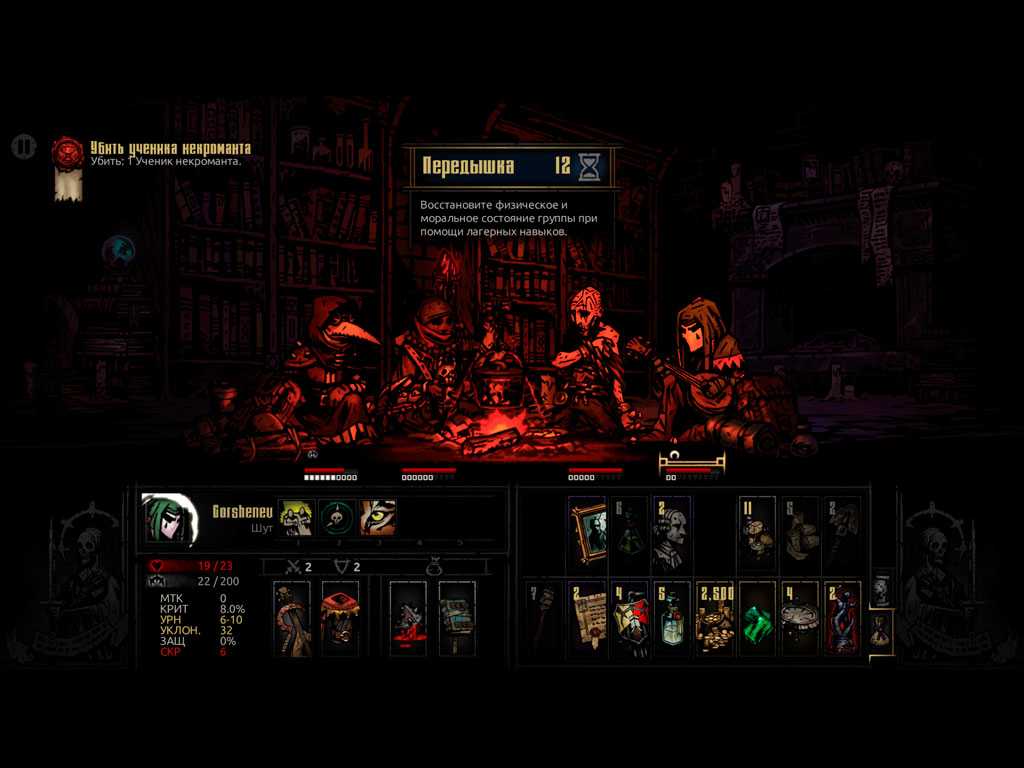 Если подземелье большое, то игрок может сделать привал (нужны дрова в инвентаре). Во время привала можно использовать лагерные способности героев, которые стоят разное количество очков. Это и всяческие восстановления и благословения.