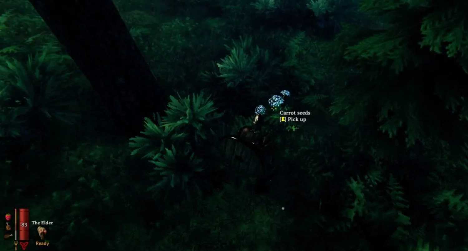 - Морковь: Это растение нельзя заполучить в готовом виде. Во время исследования Чёрного леса вы можете найти семена моркови и вырастить их в земле. Как это сделать, мы рассказали в этом руководстве, в разделе «Как выращивать растения в Valheim».