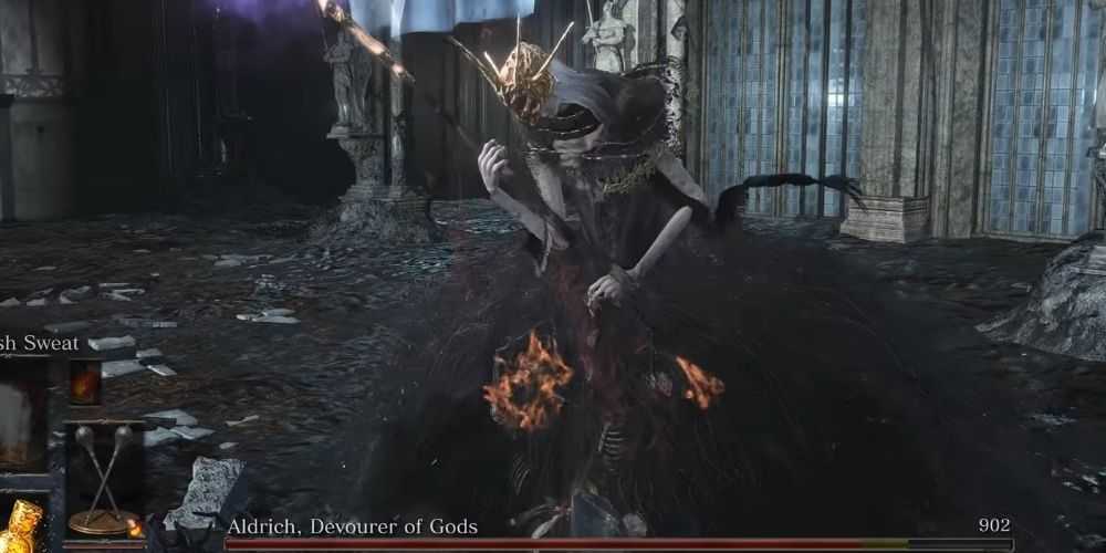 Игрокам нужно вложить несколько уровней в выносливость, чтобы убедиться, что у них достаточно выносливости для этого боя. У Олдрича есть широкие атаки по области, которые могут нанести огромный урон, если игроки попадают в их радиус. Лучшая стратегия против Олдрича — нанести несколько ударов и откатиться в сторону, когда он атакует. Для этого игрокам необходимо иметь высокие очки выносливости, чтобы успешно уклоняться и атаковать. Игроки могут потреблять предметы и экипировать предметы, которые увеличивают восстановление выносливости, такие как кольцо Хлоранти, в дополнение к прокачке выносливости.