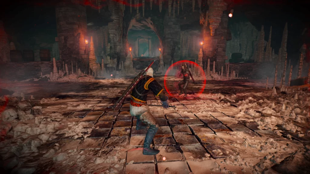 Бывший Ведьмак умело использует магию рун, постоянно находится под действием мощного щита и периодически восстанавливает здоровье, поэтому важно слишком долго не затягивать с атаками. Сбиваем противника с помощью Аарда и наносим несколько ударов мечом