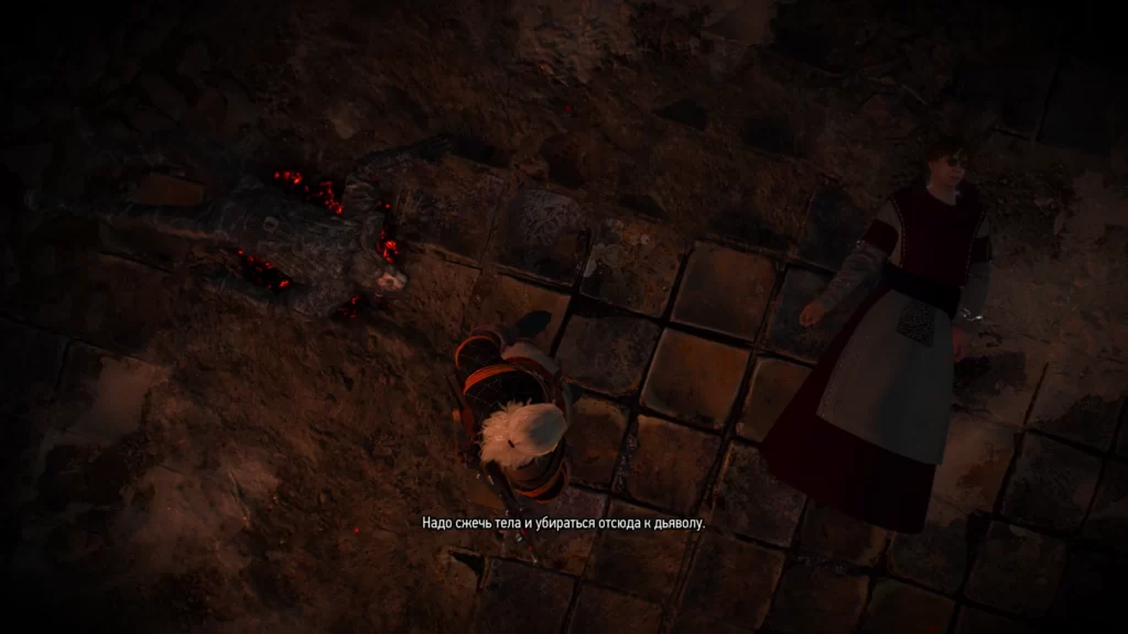 Добравшись до логова, Геральт встретит охранник, который не пропустит ведьмака к главарю из-за его занятости – он молится. Дальнейший ваш выбор влечёт за собой последствия: