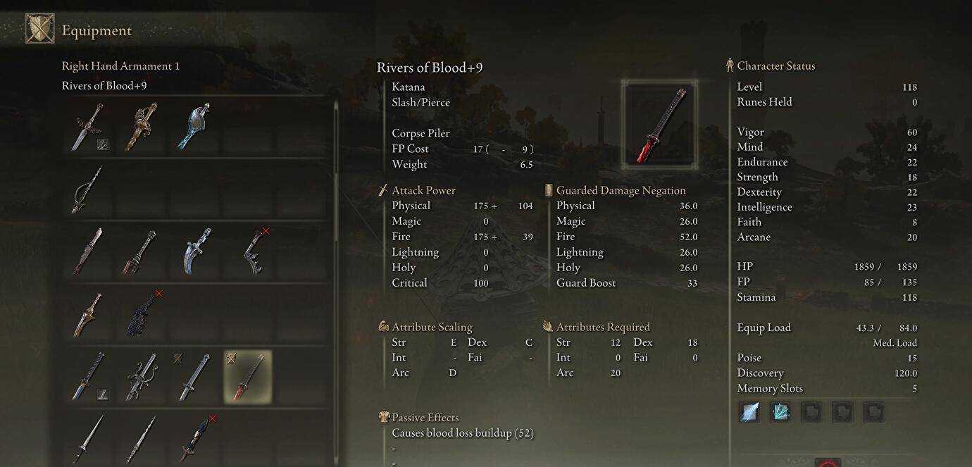Необходимые инвестиции в интеллект также означают, что меч Moonveil хорошо сочетается с посохом для колдовских атак, так что имейте это в виду. В Rivers of Blood есть оружейный арт Corpse Pilar, который посылает несколько косых ударов вперед в быстрой последовательности, чтобы нанести дополнительный урон от потери крови.